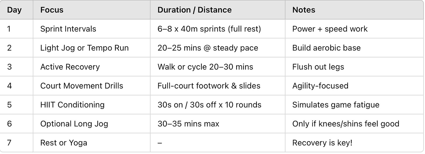 Use proper shoes – Basketball shoes for court, running shoes for longer runs.